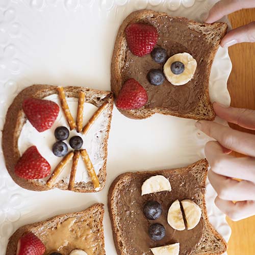 The goal in the beginning is to simply play with the food, we make it an activity to be creative and play with food that is child centred, healthy and fun. Over time, the child may go from simply watching to playing with the food, to pretending to eat, to putting it on their lips, to tasting and eventually to eating. The point is to make them feel comfortable, using a DIR approach of individual preferences and creating the safe, connected space for them to have the confidence to go ahead and try. What a joy to watch a child be messy, be curious and be creative!